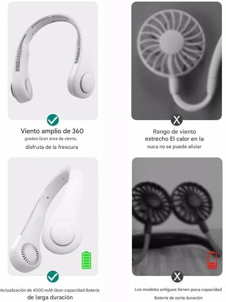 ¡Mantén la frescura en movimiento con el Ventilador de Cuello Recargable Brisa Silente !